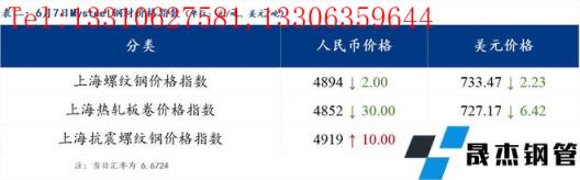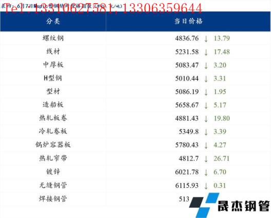 6月7日普鋼絕對(duì)價(jià)格指數(shù)變化:綜合指數(shù)5067.23,下跌13.43;螺紋鋼指數(shù)4836.76,下跌13.79;線材指數(shù)5231.58,下跌17.48;熱軋板卷指數(shù)4881.43,下跌19.8;冷軋板卷指數(shù)5349.8,下跌3.39;中厚板指數(shù)5083.47,下跌3.2。