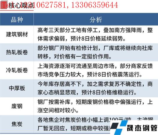 建筑厚壁無縫鋼管:6月7日,全國31個主要城市20mm三級抗震螺紋鋼均價4839元/噸,較上個交易日下跌15元/噸。高考三天,部分工地有停工,道路有封鎖,需求整體偏弱。疊加南方地區(qū)降雨天氣影響,整體需求仍然偏弱,因此預(yù)計8日國內(nèi)建筑厚壁無縫鋼管價格或?qū)⒀永m(xù)弱勢運行態(tài)勢。
