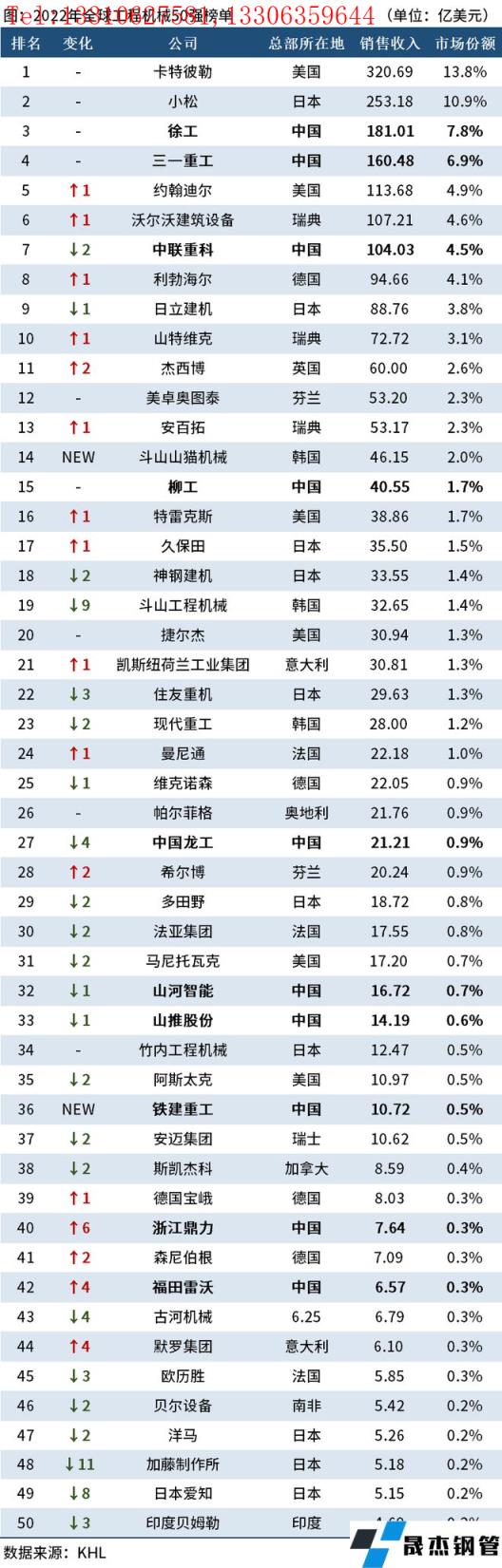 近日,世界領(lǐng)先的工程信息提供商英國KHL集團(tuán)發(fā)布了2022全球工程機(jī)械制造商50強(qiáng)排行榜。詳細(xì)梳理了該榜單內(nèi)容。