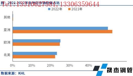 從全球各地區(qū)來看,2022年北美和歐洲市場份額占比均有不同程度提升。亞洲市場份額下降,從52.4%降至50.1%,下降2.3個百分點(diǎn)。