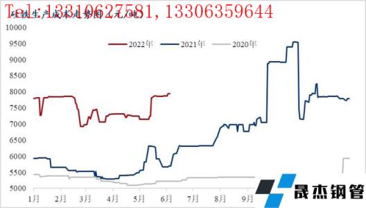 隨著電力市場化交易的實施,硅鐵行業(yè)電力成本相較于2021年已經(jīng)再上升了一個臺階,當前硅鐵市場電費價均價基本在0.5元/度,按照單耗8000度電力成本基本在4000元/噸。