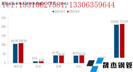 據(jù)調(diào)研,截止2022年6月9日,西南市場(chǎng)厚壁無(wú)縫鋼管累計(jì)社會(huì)庫(kù)存為215.03萬(wàn)噸,環(huán)比增加4.09萬(wàn)噸,增幅1.94%。
