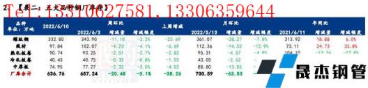 本周五大厚壁無縫鋼管品種除線材,其余均有增產(chǎn)。從增產(chǎn)品種來看,以螺紋鋼和熱軋板卷表現(xiàn)尤為突出,主要原因在于,前段時(shí)間卷螺因疫情管控、庫存壓力大、企業(yè)虧損、例行臨檢等原因而連續(xù)性減量,但近期上海解封、盈利水平環(huán)比提升、廠庫加快前移等操作,促使企業(yè)生產(chǎn)狀態(tài)步恢復(fù)。短期來看,企業(yè)生產(chǎn)積極性雖有提升,但是面臨粗鋼壓減政策的大環(huán)境、以及需求持續(xù)性偏弱的現(xiàn)實(shí)條件,不排除后仍有減產(chǎn)可能,生產(chǎn)動(dòng)力持續(xù)性恢復(fù)的可能性不大。