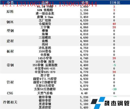 表:6月9日唐山鋼市主要品種價(jià)格一覽(單位:元/噸)