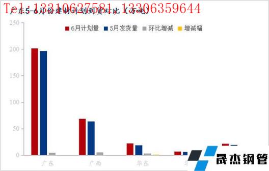 2、6月廣東地區(qū)建筑材區(qū)內(nèi)(廣東和廣西)計劃供應量共計270.5萬噸,環(huán)比減少19.5萬噸,降幅6.7%;區(qū)外計劃供應量為50.5萬噸,環(huán)比增加1.4萬噸,增幅2.9%;