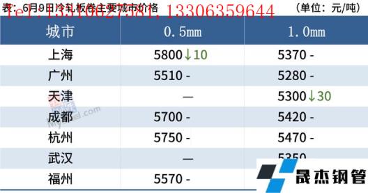 冷軋板卷:6月9日,全國24個主要城市1.0mm冷卷均價5435元/噸,較上個交易日下跌5元/噸。市場需求持續(xù)疲軟,下游企業(yè)按需采購,據(jù)悉,目前部分商家低價成交尚可,高價成交艱難,多以出貨回籠資金為主。即便黑色系期貨盤面震蕩偏強(qiáng)運(yùn)行,但現(xiàn)貨市場跟漲動力不足,多數(shù)商家為保成交調(diào)價意愿并不強(qiáng),且整體市場成交處于中等偏下水平。庫存方面,本周冷軋無縫厚壁鋼管廠家?guī)齑?0.43萬噸,周環(huán)比減少0.32萬噸,社會庫存136.09萬噸,周環(huán)比減少0.02萬噸,周消費量84.21萬噸,環(huán)比增加0.51萬噸。綜合來看,預(yù)計10日國內(nèi)冷軋板卷價格或?qū)⒁苑€(wěn)為主。