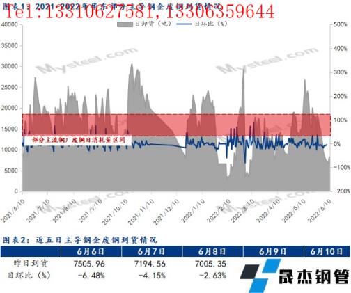 截止發(fā)稿,6月10日統(tǒng)計(jì)華東主導(dǎo)鋼企廢鋼到貨昨卸8304.23噸,較前一日增加19.39%。日均到貨普遍低于日耗。結(jié)合上述消耗情況,可見多數(shù)無(wú)縫厚壁鋼管廠家暫未受此消息影響而計(jì)劃降低庫(kù)存,反而部分無(wú)縫厚壁鋼管廠家?guī)齑嫫停醒a(bǔ)庫(kù)需求。