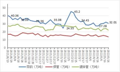 網統(tǒng)計唐山地區(qū)熱軋帶鋼生產企業(yè)15家,總計29條帶鋼軋線, 5月內平均產能利用率57.81%,較上月同期增長2.01個百分點,增長率快速下降,較去年農歷同期下降14.23個百分點。同時山東、河北、山西等地發(fā)文推進無縫鋼管行業(yè)超低排放改造,不過中鋼協(xié)數據顯示,截至2022年4月底,已經有40家無縫鋼管企業(yè)完成了超低排放改造和評估監(jiān)測,且以往年經驗,大多以壓減建筑無縫鋼管 厚壁鋼管產量為主,數據上反饋6月熱軋類減量預期不大。