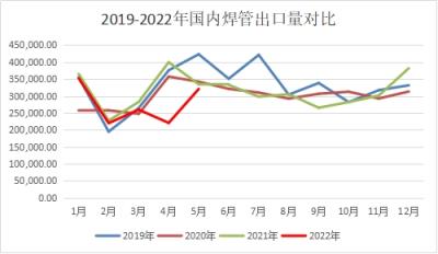 引言:5月我國厚壁鋼管出口量增超5成,部分品種甚至增近兩倍,其中無縫鋼管出口量亦實現(xiàn)了增長35%左右。月內(nèi)俄烏沖突的影響逐步緩解,而美聯(lián)儲加息及各國不同的應(yīng)對政策,使海外環(huán)境仍充斥諸多不確定性。本文分別從我國焊管、無縫管的進出口情況進行了簡單分析。