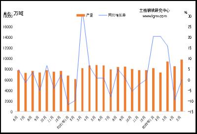 據(jù)國(guó)家統(tǒng)計(jì)局統(tǒng)計(jì),2022年1-5月份全國(guó)鐵礦石原礦總產(chǎn)量為42388.3萬(wàn)噸,同比增長(zhǎng)0.2%,5月份在疫情逐步得到控制后,國(guó)產(chǎn)鐵礦石產(chǎn)量開(kāi)始出現(xiàn)穩(wěn)步增長(zhǎng)。