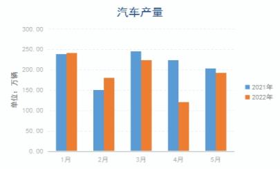 據(jù)中國汽車工業(yè)協(xié)會統(tǒng)計數(shù)據(jù)顯示,2022年5月份,汽車產(chǎn)銷分別完成192.6萬輛和186.2萬輛,環(huán)比分別增長59.7%和57.6%,同比分別下降5.7%和12.6%。1-5月,汽車產(chǎn)銷分別完成961.8萬輛和955.5萬輛,同比分別下降9.6%和12.2%。