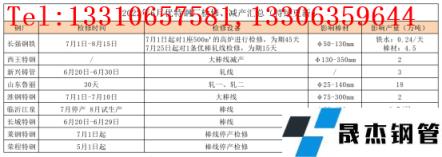 6月份無縫鋼管廠家出廠價格大幅下調(diào)。無縫鋼管廠家盈利情況仍不理想,整體厚壁鋼管出庫困難,無縫鋼管廠家多以虧損為主,在資金壓力較大情況下,有意打壓原料價格,無縫鋼管廠家對原料的采購積極性一般。近期無縫鋼管廠家考慮到廠庫居高不下,成本明顯虧損的情況下,各無縫鋼管廠家紛紛安排檢修減產(chǎn),具體檢修情況如下: