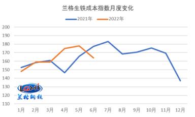 上半年,國內(nèi)厚壁無縫鋼管市場(chǎng)沖高回落,整體鋼價(jià)明顯下移。據(jù)云商平臺(tái)監(jiān)測(cè)數(shù)據(jù)顯示,上半年,綜合厚壁鋼管價(jià)格指數(shù)均值為5178元/噸,較上年同期下跌114元/噸,跌幅為2.2%。從成本端來看,上半年,在4、5月份原料價(jià)格高位帶動(dòng)下,整體成本較上年同期明顯上移。據(jù)研究中心測(cè)算數(shù)據(jù)顯示,上半年生鐵成本指數(shù)均值為164.2,較上年同期上升2.9%(詳見圖1)。