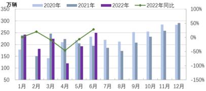 上半年疫情產(chǎn)生階段性沖擊,但乘用車仍保持了增長態(tài)勢(shì),產(chǎn)銷分別完成1043.4萬輛和1035.5萬輛,同比增長6.0%和3.4%。尤其6月份乘用車產(chǎn)銷分別完成223.9萬輛和222.2萬輛,同比增長43.6%和41.2%,產(chǎn)銷形勢(shì)好于預(yù)期。