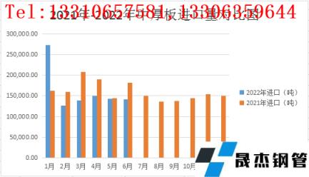 圖6 中厚板產(chǎn)品2021-2022年度進口量對比圖