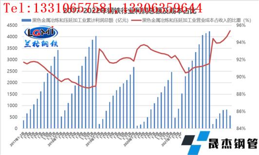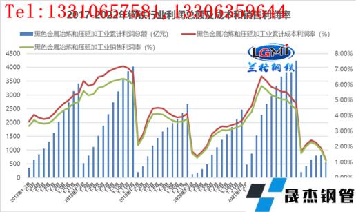 圖3 2017-2022年厚壁無縫鋼管行業(yè)利潤總額及成本和銷售利潤率