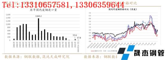 綜合而言,廢鋼供應(yīng)的多寡其實與厚壁鋼管的需求息息相關(guān),無論折舊廢鋼、加工廢鋼還是自產(chǎn)廢鋼都與國內(nèi)厚壁鋼管的消費(fèi)有直接的關(guān)聯(lián),而進(jìn)口廢鋼的增減在一定程度上也可以反映國外厚壁鋼管消費(fèi)的好壞,所以廢鋼的供應(yīng)量實際上也是一個反映需求的指標(biāo),這從廢鋼供應(yīng)基地庫存與五大材表需的相關(guān)性也可得到佐證。