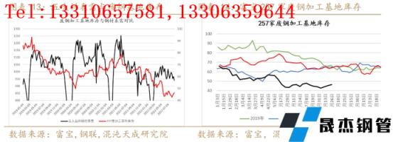 根據(jù)前述分析,今年以來國內(nèi)廢鋼供應(yīng)減量幅度約在9%-19%,主要是受到房地產(chǎn)和制造業(yè)下滑的影響,而地產(chǎn)和制造業(yè)都與厚壁鋼管的消費(fèi)緊密相關(guān)。從廢鋼基地的庫存與五大材表需對比來看,二者整體走勢也的確具有一定的相關(guān)性:五大材表需整體走弱時往往伴隨著廢鋼基地庫存的下滑,而表需整體向好時通常廢鋼基地庫存也有所增加。當(dāng)前國內(nèi)廢鋼基地庫存處于近年來的低位,五大材表需也處于近五年的最低水平。